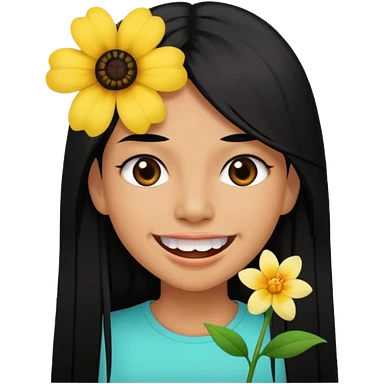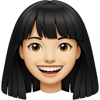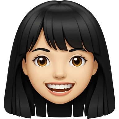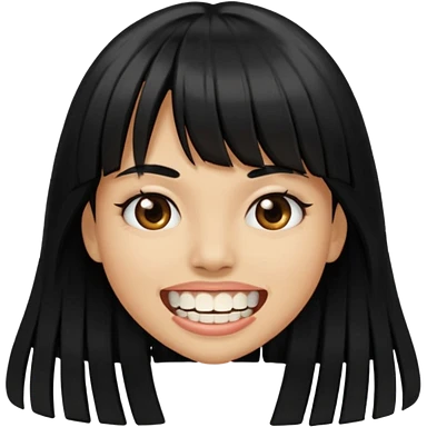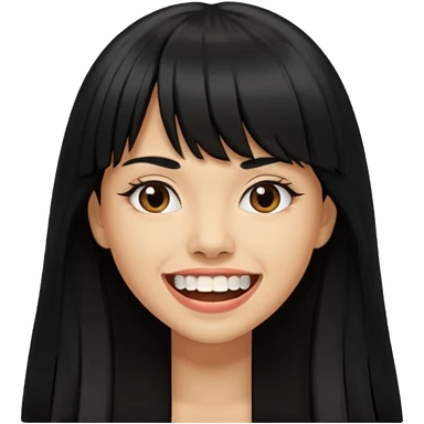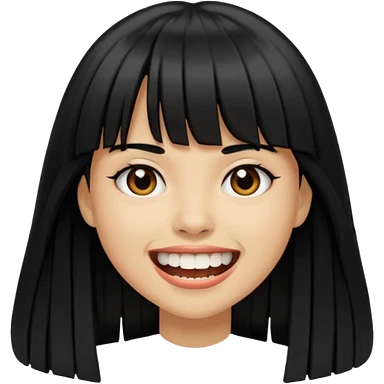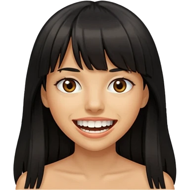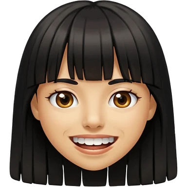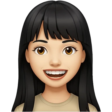 Woman with big teeth, a little tan and long straight black hairs with emoji