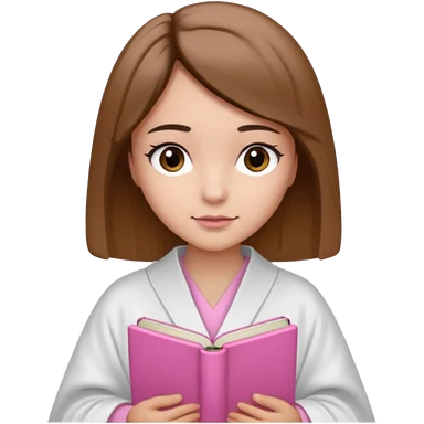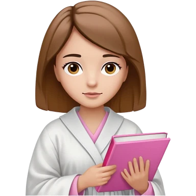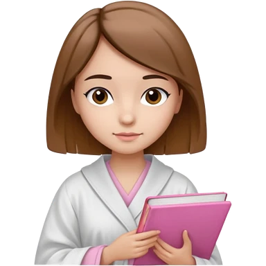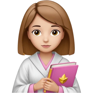 Девушка с короткими волосами до плеч русого цвета, у неё белый халат, в руках она держит книгу emoji | AI Emoji Generator