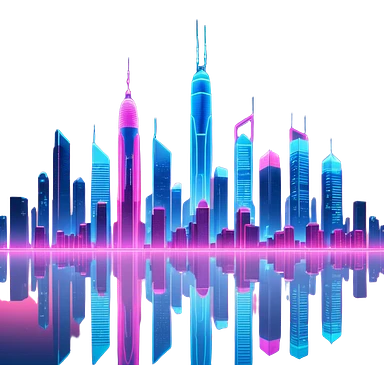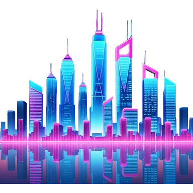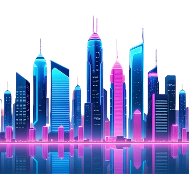 A futuristic cityscape at night, with neon lights and towering skyscrapers illuminating the sky emoji
