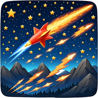A dramatic, fiery meteor shower streaking across the night sky, with shooting stars blazing their trails emoji