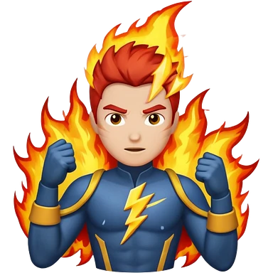 A hero standing tall, with lightning bolts and fire surrounding them emoji