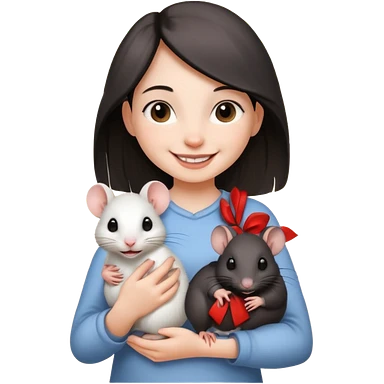 Девочка с двумя крысами на руках белой и чёрной emoji | AI Emoji Generator