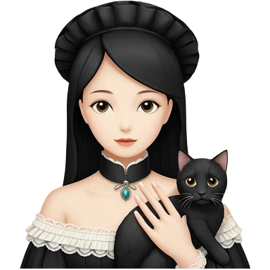 девушка светлая с голубыми глазами и темными волосами и с черном котом на руках emoji