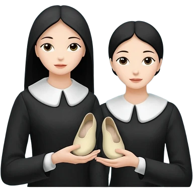 Девочка с коричневым волосами,с зелёными глазами,на ней одет чёрной белый топ,на руке браслет,а на голове бантик.Она держит в руках чёрно белую кошку emoji