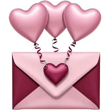 Pale pink love letter in burgundy and perl metallic heart-shaped balloons emoji