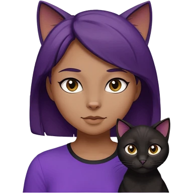 Cartoon female Anthro phobic black cat with brown short hair with purple shirt emoji