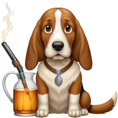 hillbilly basset hound with moonshine and a gun emoji