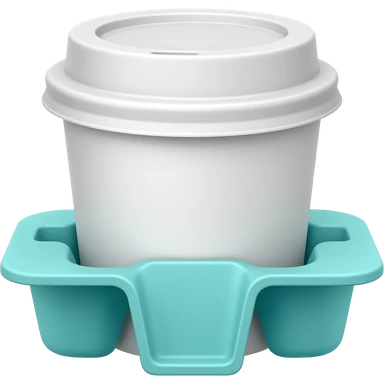 Белыйстакан кофе на вынос с белой крышкой, вокруг стакана бирюзовый картонный держатель emoji