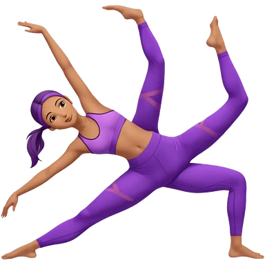 A flexible woman in purple outfit stretching sideways in triangle pose, minimalist background, soft lighting. emoji