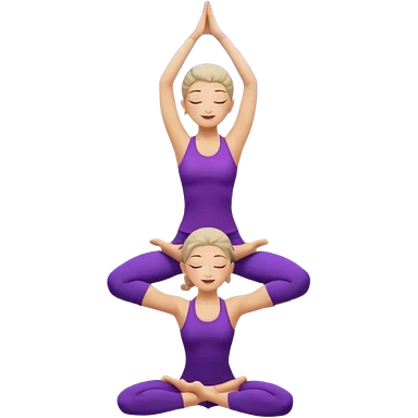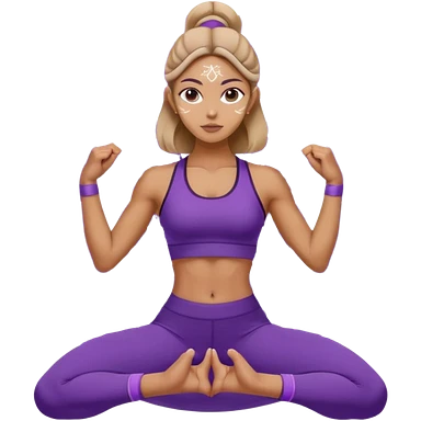 A serene woman wearing purple yoga clothes balancing in tree pose, stars around her, meditative aura. emoji