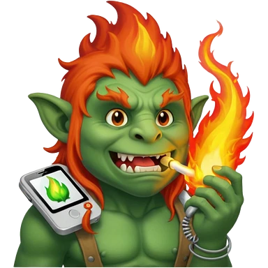Troll breathing fire on a work phone emoji