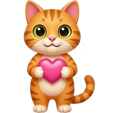 рыжий кот с сердечком розовым в лапках emoji