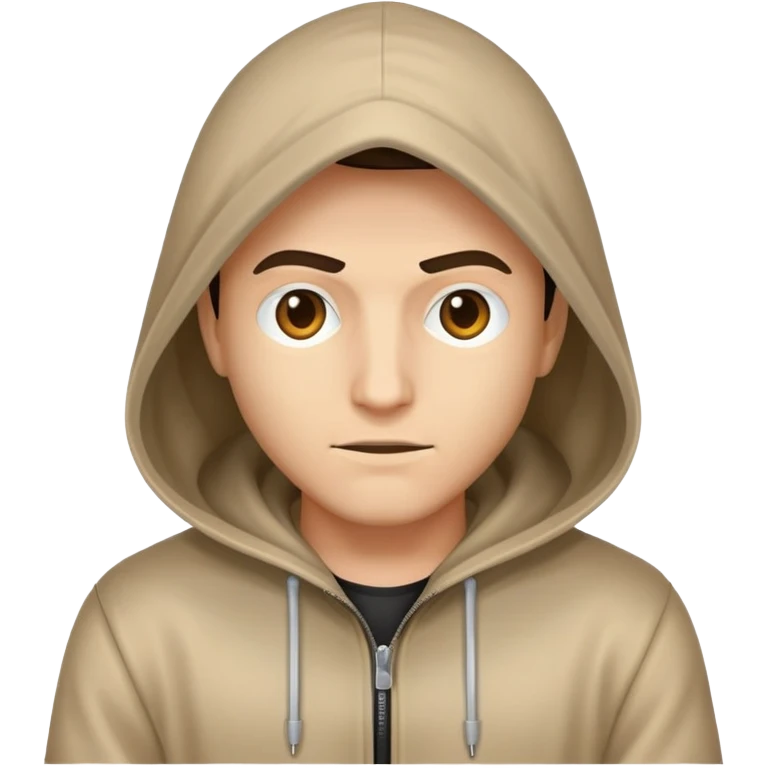 A hyperrealistic 3D artwork featuring a парень в худи на голове капюшон wear like bursting through a card, with dramatic lighting, monochromatic palette, and intricate details. The bearded , emerges lifelike from the card's surface in a cinematic emoji