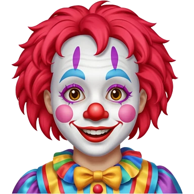 Clown – Bright makeup, red nose, colorful wig, exaggerated smile emoji