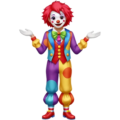 Clown – Bright makeup, red nose, colorful wig, exaggerated smile, full body emoji
