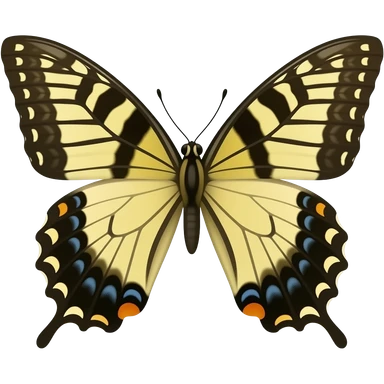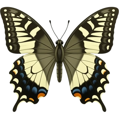 🦋 թևերի եզրերը լինի կապույտ, կանաչ թևերով, մարմնին միանալու հատվածը շագանակագույն, սև մարմնով emoji