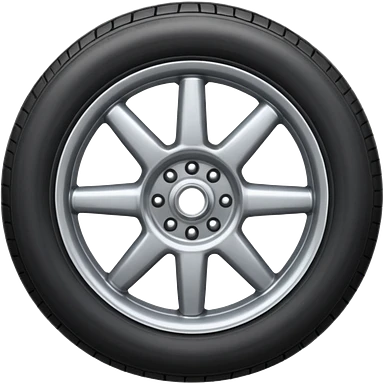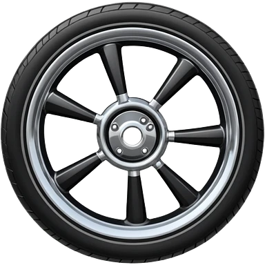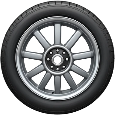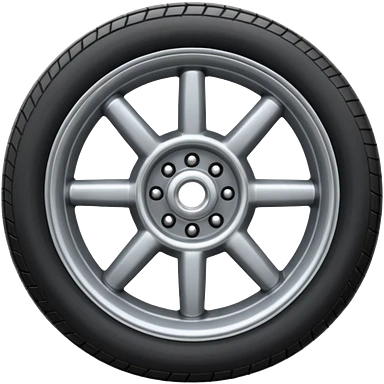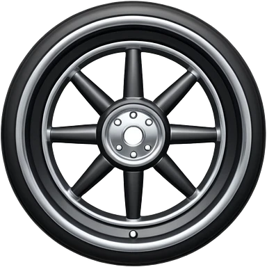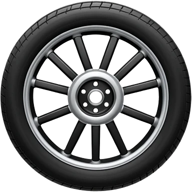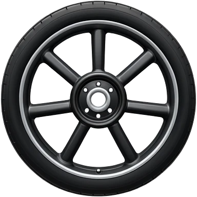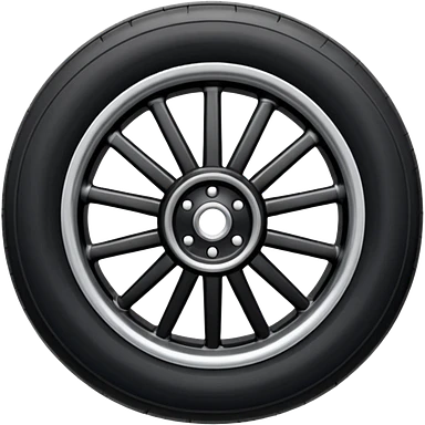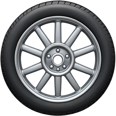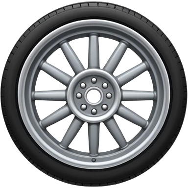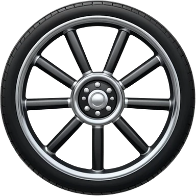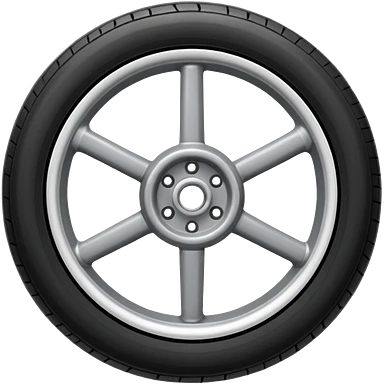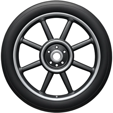 Front-view realistic wheel, perfectly symmetrical, 5–8 short evenly spaced spokes, thick wide outer rubber rim, heavy solid look, centered. emoji