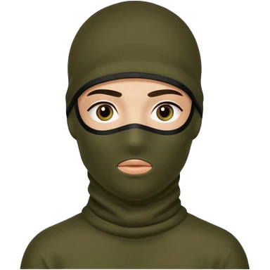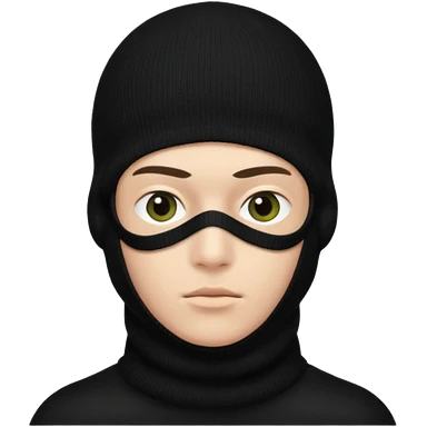 Un joven con un pasamontañas negro que solo le deje ver los ojos y cejas emoji