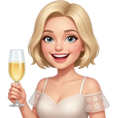 Very crazy but happy girl, likes prosecco, Thin blond short hair, botox in face, blond, white skin, nice dress emoji
