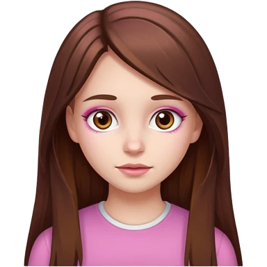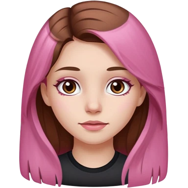 white skined girl with long brown hair and brown eyes and few pink highlights emoji