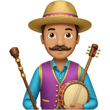 Мужчина в традиционной одежде малых северных коренных народов с бубном и шаманской погремушкой в руках emoji