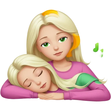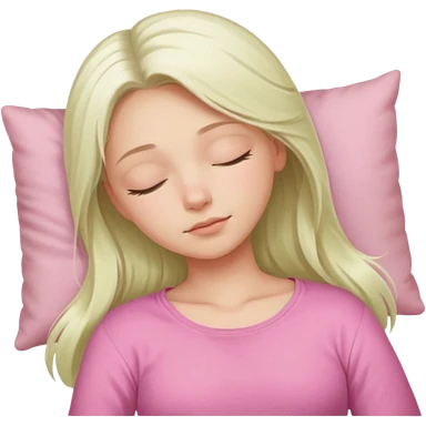 Long platinum blonde hair girl with green eyes in pink top sleeping emoji
