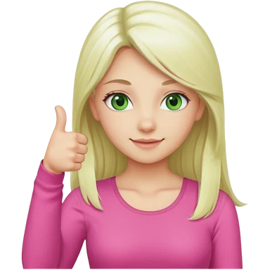 Long platinum blonde hair girl with green eyes in pink top showing a thumbs up emoji