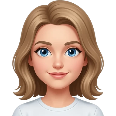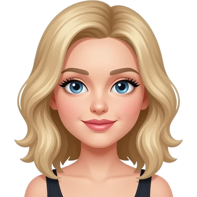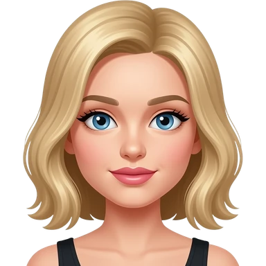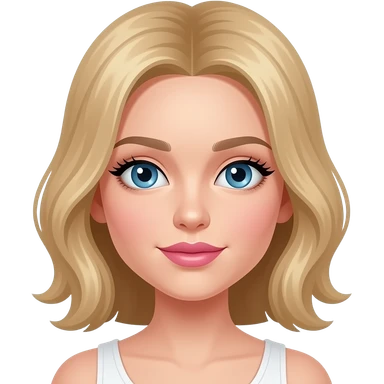 a girl with medium blonde hair and blue eyes, black eyelashes, pink lips emoji
