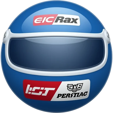 A scene of a blue ball with helmet window at the front with racing car sponsors emoji