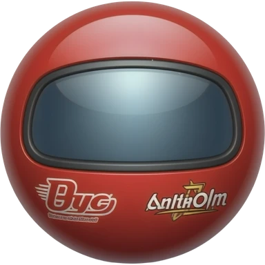 A scene of a red ball with helmet window at the front with racing car sponsors emoji