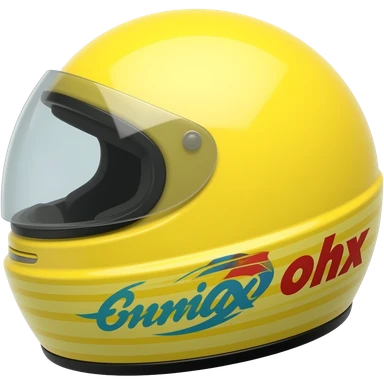 A scene of a yellow ball with helmet window with racing car sponsors emoji