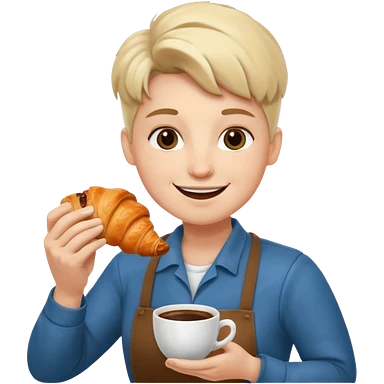 Белокожий бариста ест круассан emoji | AI Emoji Generator