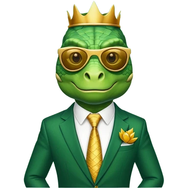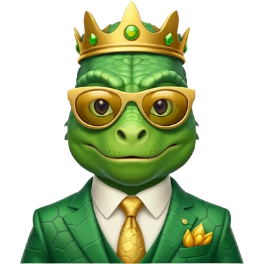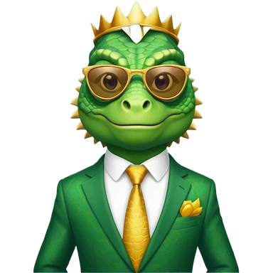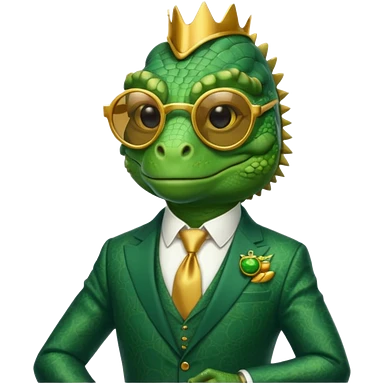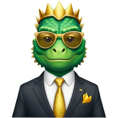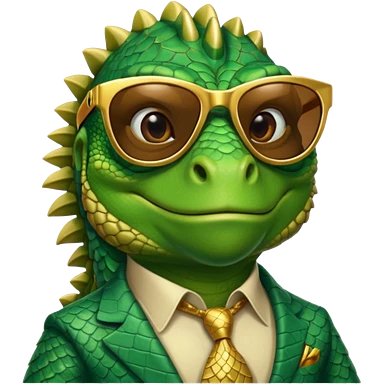 rich capitalist iguana head with golden glossy sunglasses emoji