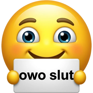 Yellow smiley face holding up a sign that says "owo slut" emoji
