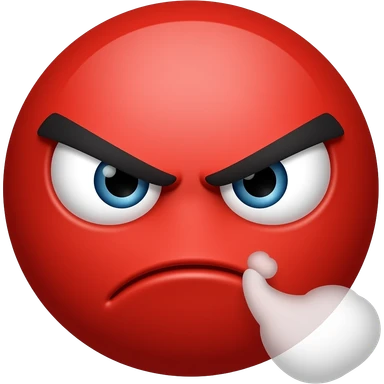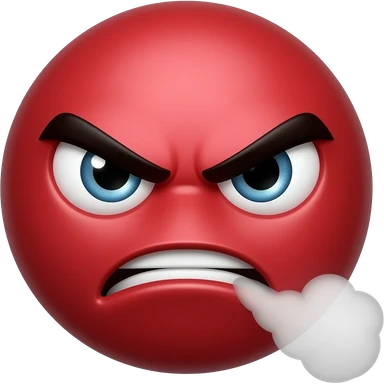 angry red emoji with steam coming from side , make it have one big eye and one small eye emoji
