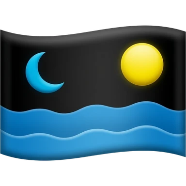 일단 국기 생성 할건데 왼쪽 위쯤에 하늘색 초승달이 있고 오른쪽 위쯤에는 둥그런 해가 있어 노란색으로 배경은 검은이고 맨 밑에 1/5 정도 국기 비율을 잡아먹는 파란 물결이 있어 emoji
