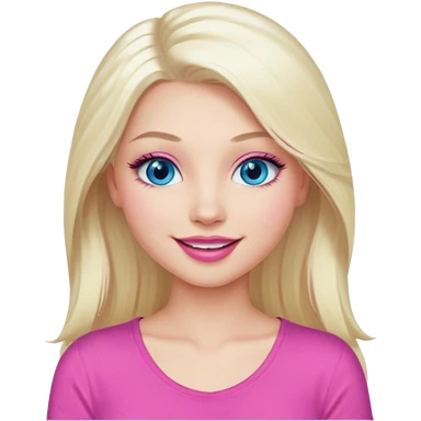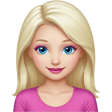 Girl with long platinum blonde hair, blue eyes, long lashes, sexy pink lips, wearing a pink top emoji