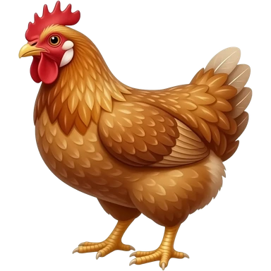 دجاجة: دجاجة بنية سمينة بتفاصيل ريش واضحة وقُطّاعة حمراء. emoji