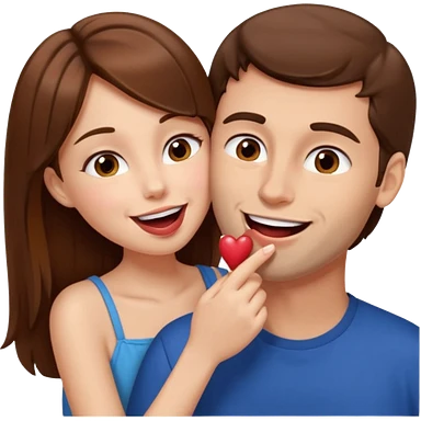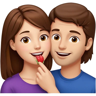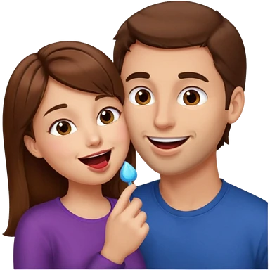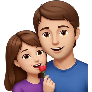 There is a girl with brown hair standing next to her, a tall man with brown hair, and the girl passionately licks his cheek emoji