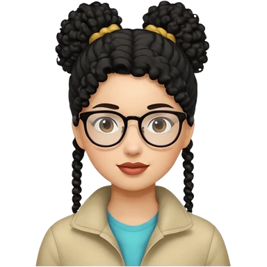 hija con gafas y cabello rizos de color negro con una cola de caballo alta emoji