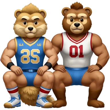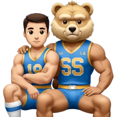 Can you create a emoji of threw Nebraska Cornhusker mascot sitting on top of the UCLA Bruin mascot emoji