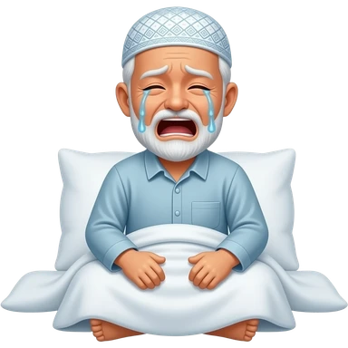 пожилой мужчина мусуьманин в слезах кречит просыпается и садиться emoji