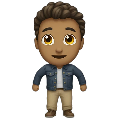 згенеруй емодзі хлопця середнього віку чорне волося середньої довжини але розтріпане, в якого пірсінг "правої брови" та сережка на лівому вусі хрест, і сидить він за ноутбуком асус і зроби щоб це було фронтально emoji