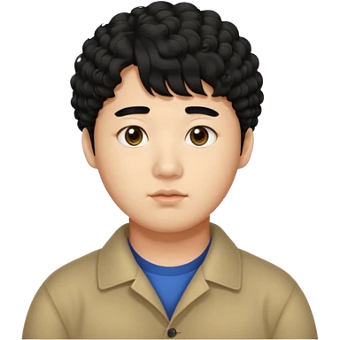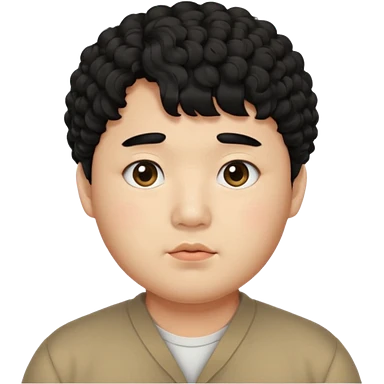 a Korean man in 20s with a curly hair and bangs, chubby cheeks, big monolid eyes , dark eyebrow, emoji