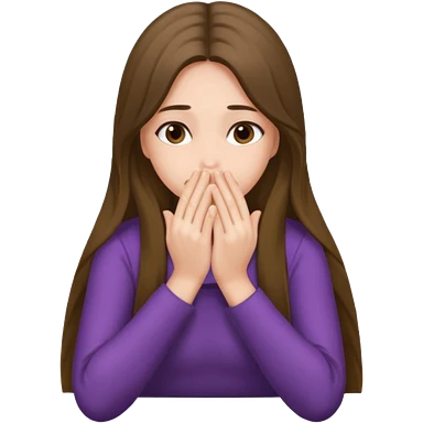 у девочка с каре с коричневыми волосами в темно-синей толстовке закрывает рот руками emoji