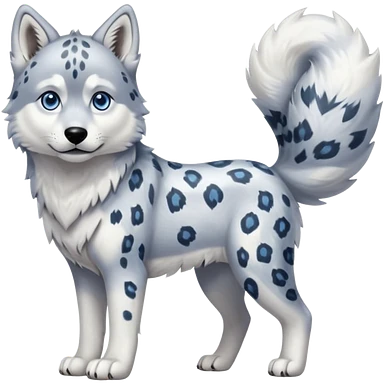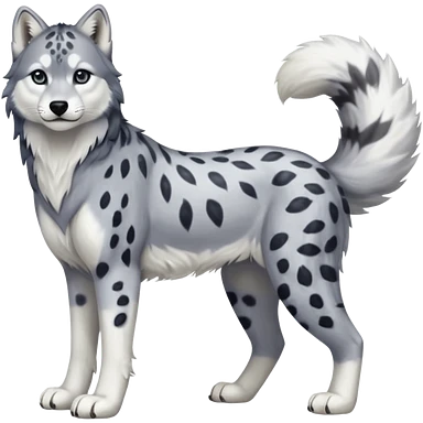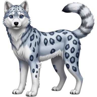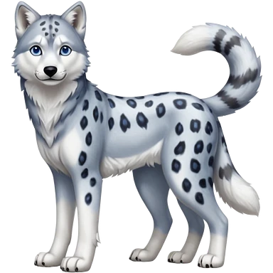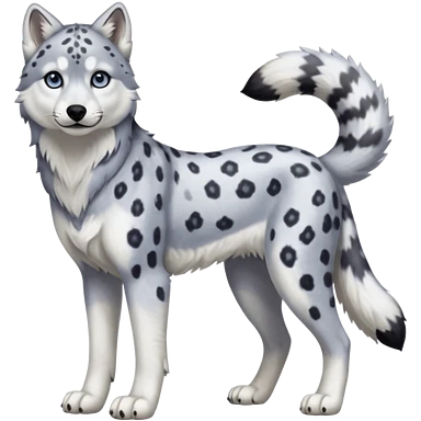 Realistic beautiful pretty "Schnolf"-"TaniDaReal"-Husky-Snow-leopard-wolf-hybrid-fusion-animal-creature, full body emoji