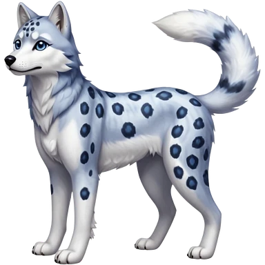 Realistic lanky natural feral beautiful pretty "Schnolf"-"TaniDaReal"-Husky-Snow-leopard-wolf-hybrid-fusion-animal-creature, full body emoji