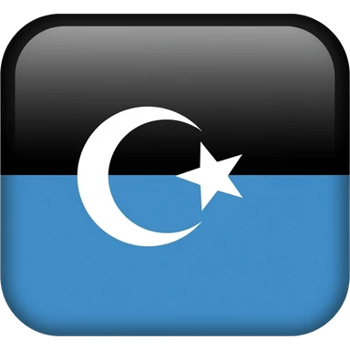 Флаг 2 полос. Верхняя полоса чёрная, нижняя полоса синяя. Посередине нарисован белый символ полумесяц со звездой. Форма флага не квадратная, а флаговая emoji