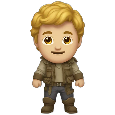 Молодой человек. Он одет в светлый вязаный жилет с V-образным вырезом поверх белой длинной рубашки с длинными рукавами. На нем также синие джинсовые брюки с большими накладными карманами. Фон минималистичный, светло-серый, с простым дизайном, подчеркивающим одежду и позу модели. emoji
