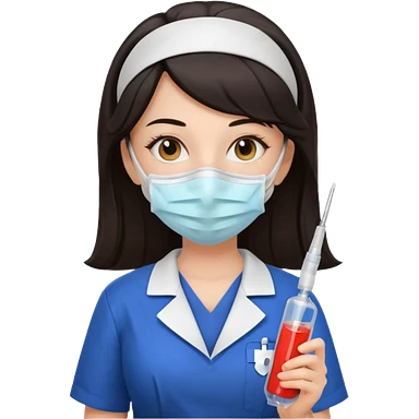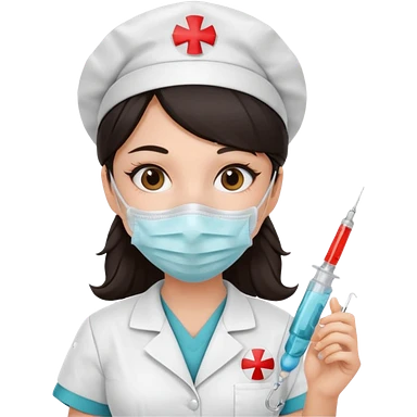 ی دختر با روپوش پرستاری و ماسک موی مشکی و امپول ب دست emoji